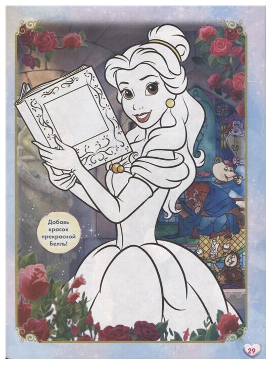 В этой книге тебя ждёт встреча с любимыми принцессами Disney – Авророй, Ариэль, Белль, Белоснежкой, Жасмин, Золушкой, Меридой, Мулан, Рапунцель и Тианой! Выполняя задания на развитие фантазии, внимания и творческих способностей, ты весело и волшебно проведёшь время! Самые сложные задания отмечены особыми кружочками. Если ты выполнишь их, то заслужишь похвалу – сможешь разместить около них наклейки с короной и надписью «МОЛОДЕЦ!».