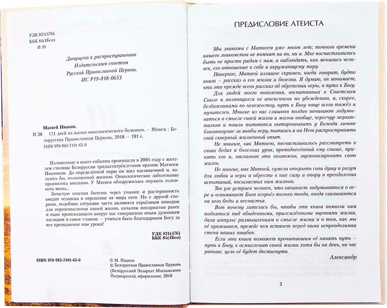 111 дней из жизни онкологического больного (Иванов М.); Белорусский Экзархат Московского Патриархата, 2018