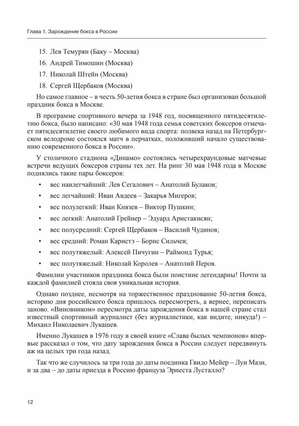 Книгу "Как стать чемпионом, лежа на диване" можно назвать энциклопедией бокса. Автору удалось собрать уникальный материал: начиная с истории зарождения бокса до наших дней. Писатель проделал кропотливую работу, изучив опыт чемпионов прошлых лет, опираясь на литературные источники, учебники, справочники, архивные материалы разных лет. И, прежде всего, собственный опыт. Для тех, кто "в боксе", либо только думает заняться этим интересным видом спорта, эта книга станет - настольной книгой. Читается легко и интересно! Повторюсь, собран уникальный материал. Книга дополнена красочными фотографиями, а для новичков интересными и доступным к прочтению станут рисунки, где автор подробно расписывает схемы тренировочного процесса. Для тех, кто любит и интересуется опытом сегодняшних чемпионов, собраны интересные интервью, истории боев, истории из жизни. Рекомендую 100 процентов.