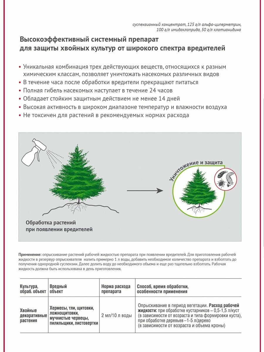Специализированный препарат против комплекса вредителей на хвойных культурах. Уничтожает хермесов, пилильщиков, тлю, щитовок, мучнистых червецов и различных гусениц за 24 часа! Гран-при выставки Цветы-2018!