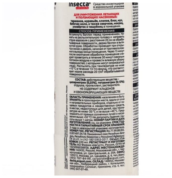 Модель: Средство от насекомых Avgust Insecta аэрозоль 220 мл