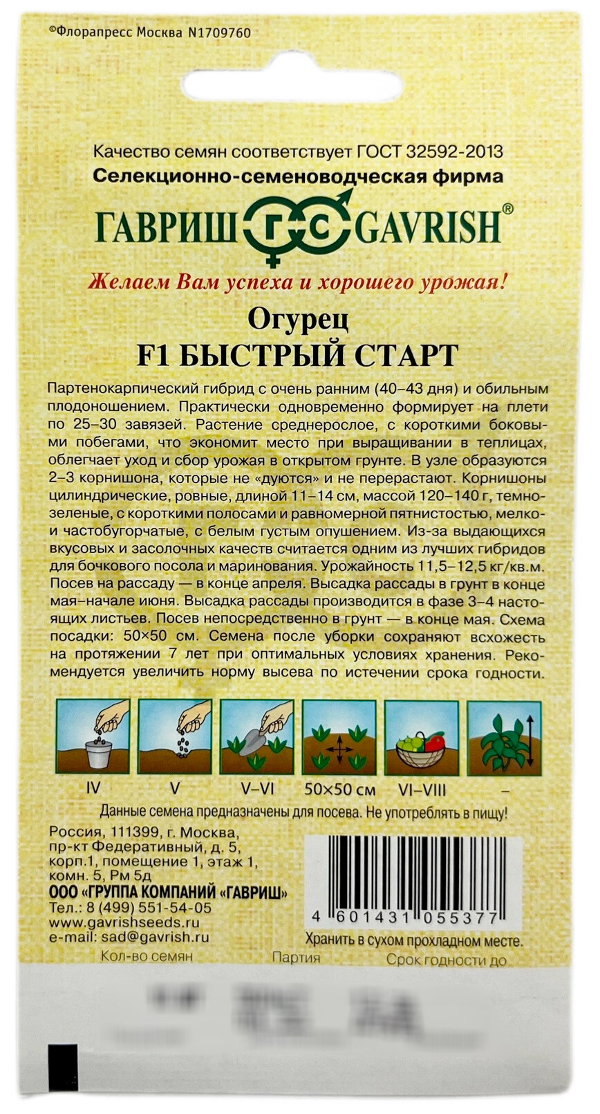 Модель: Огурец Быстрый старт F1 Гавриш зеленый 10 шт