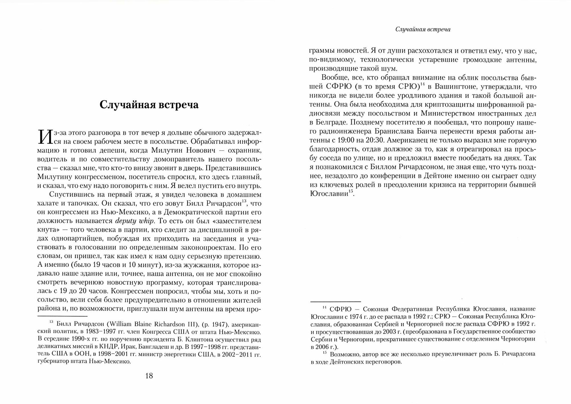 В книге приводятся свидетельства очевидца переговоров, происходивших в 1995 году в американском городе Дейтоне и положивших конец гражданской войне в Босниии Герцеговине и первому этапу югославского кризиса (1991-2001). Заключенный в Дейтоне мир стад важным рубежом для сербов, хорватов и бошняков (боснийских мусульман), для постюгославских государств, всего балканского региона, Европы и мира в целом. Книга является ценным источником для понимания позиции руководства СРЮ/Сербии в тот период и сложных процессов, повлиявших на складывание новой системы международной безопасности.