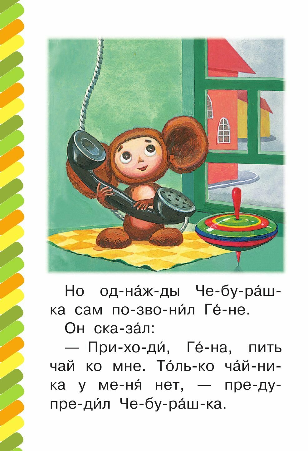 Замечательная книжка, малыш просто в восторге от этой коллекции; ее очень удобно держать и листать, потому что она небольшая ; очень яркие и красивые иллюстрации , большой шрифт. В данной книге 2 очень забавные истории про Гену и Чебурашку. Ребенок всегда теперь в первую очередь просит почитать именно эти книги.