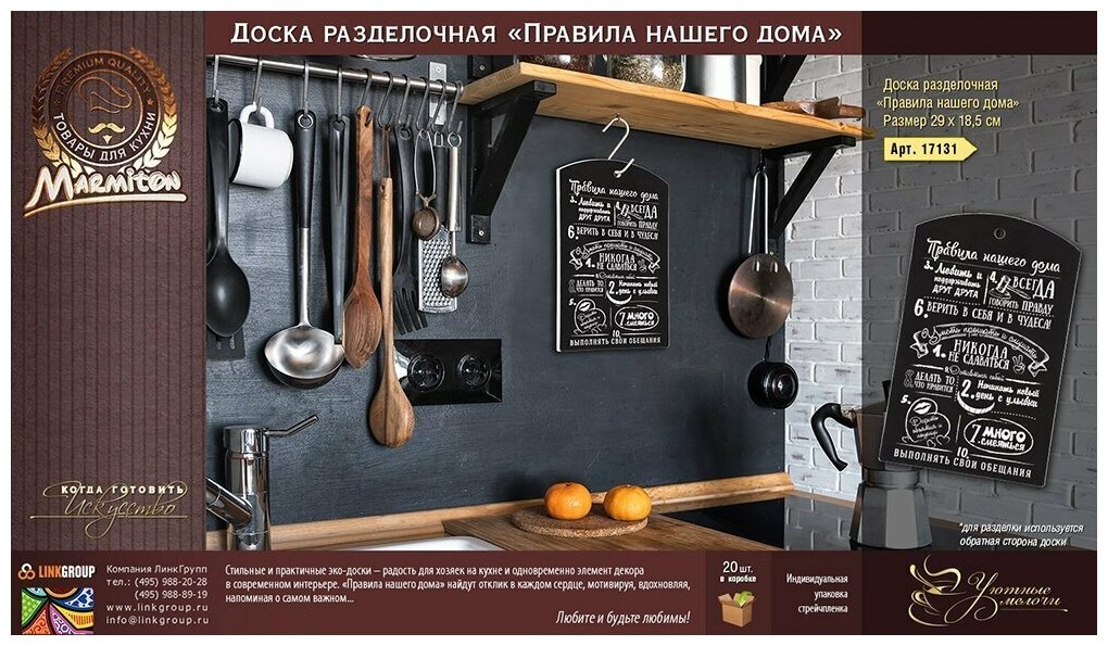 На сегодняшний день товар «Доска разделочная Marmiton правила нашего дома 29х185 17131» можно купить с кешбеком в 1 магазине: Яндекс.Маркет