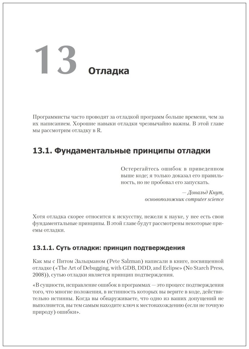 "Искусство программирования на R" - это путешествие, в которое вы отправляетесь с опытным гидом, готовым поделиться всей информацией о разработке ПО: от типов и структур данных до таких продвинутых тем, как замыкания, рекурсия и анонимные функции. Вам не понадобятся специальные знания в области статистики, а программистский опыт может варьироваться от начинающего до профессионала. Вы познакомитесь с функциональным и объектно-ориентированным программированием, математическим моделированием и преобразованием сложных данных в простые и удобные форматы.