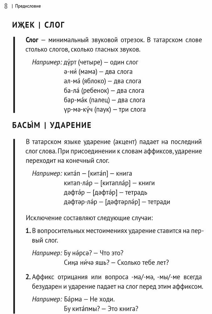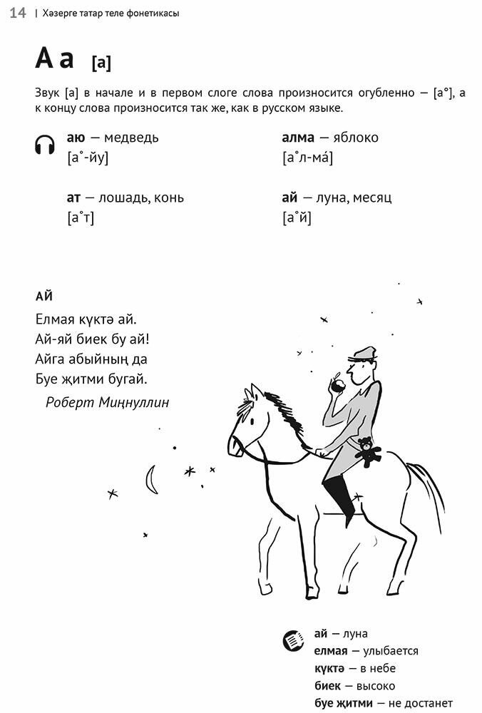 Отличный учебник для начинающих и детей. Изложение доступное и лаконичное. Некоторые темы и уроки сопровождаются стихами, загадками, пословицами, что делает изучение языка доступнее. Вместо запоминания отдельных слов, можно выучить распространённые тексты. Не все слова, использованные в текстах, даны вместе с переводом. Использование словаря будет полезным дополнительным навыком ученика. Есть аудио книга этого автора, где озвучена большая часть текстов, её также неплохо купить и обучение будет эффективнее. Можно рекомендовать всем начинающим учить язык самостоятельное изучение татарского языка, в качестве учебника начального уровня. Однозначно рекомендую.