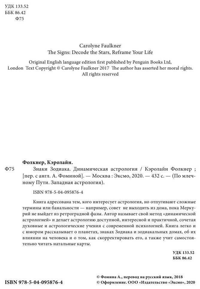 Знаки Зодиака. Динамическая астрология (Фолкнер Кэролайн); ООО "Издательство "Эксмо", 2019