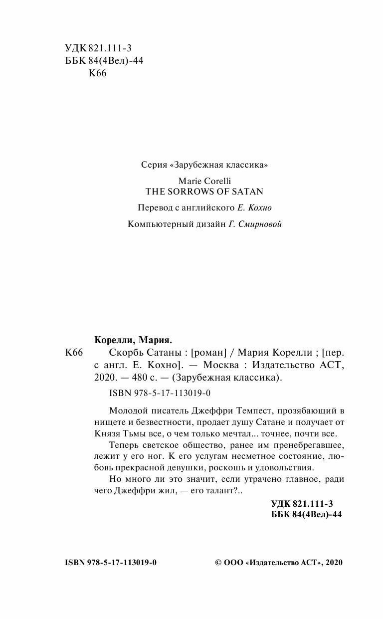Книга: Скорбь Сатаны (Мария Корелли); Издательство АСТ, 1895