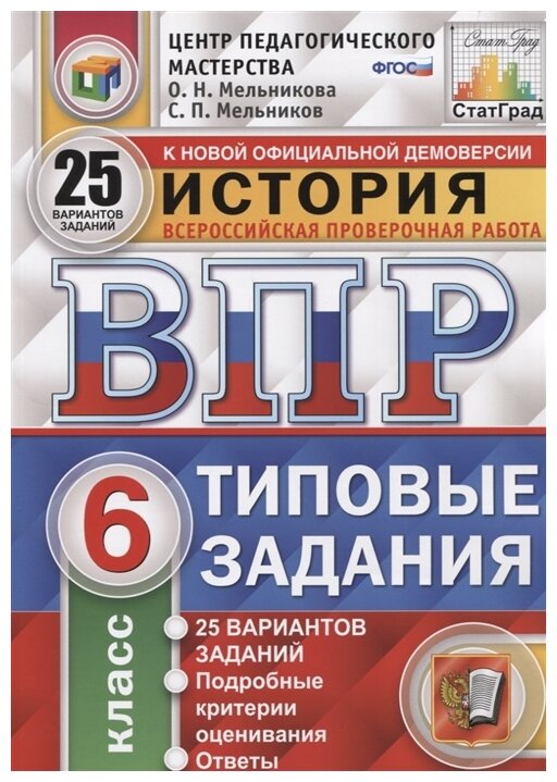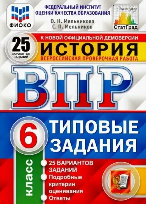 ВПР. ФИОКО. СТАТГРАД. История. 6 класс. 25 вариантов. ТЗ. (Мельникова Ольга Николаевна, Мельников Сергей Павлович); Экзамен, 2025