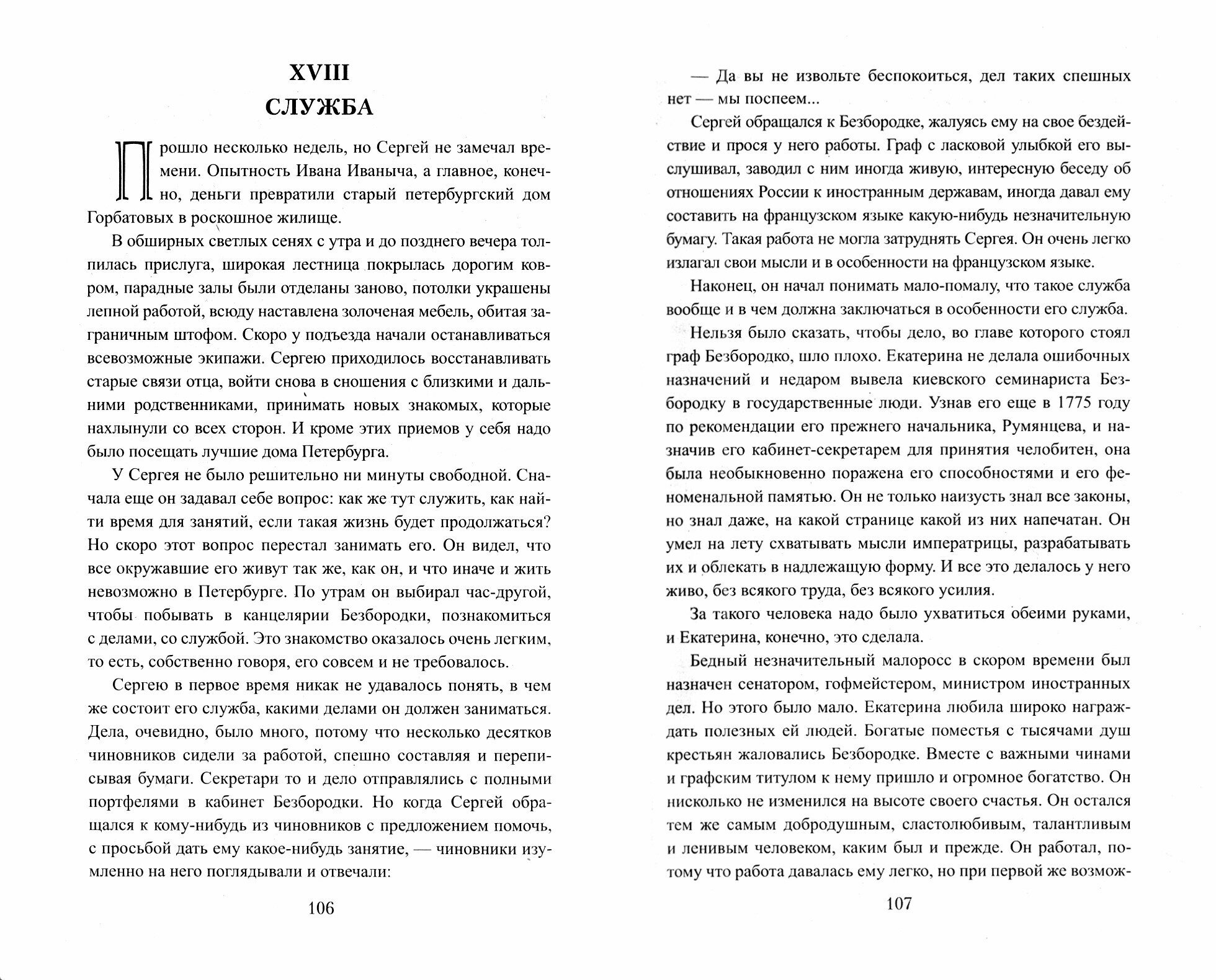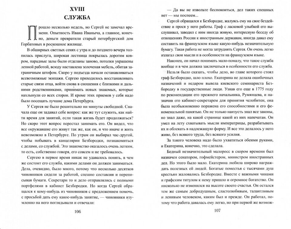 Действие романа разворачивается в блистательную эпоху Екатерины II. Юный дворянин Сергей Горбатов с головой окунается в придворную жизнь. Он наивен и не испорчен, но благодаря блестящему образованию, полученному стараниями наставника-француза, Сергей производит очень благоприятное впечатление на императрицу, которая даёт ему дипломатическое поручение. Для выполнения миссии следует ехать в Париж, а на календаре 1789 год - год начала Великой французской революции…