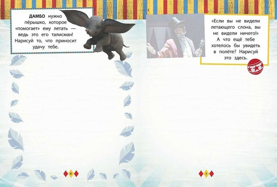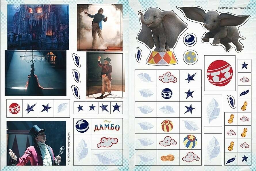 По-новому рассказать историю о летающем слонёнке взялся всемирно известный режиссёр Тим Бёртон. Потрясающая атмосфера бродячего цирка 40-х годов XX века теперь оживёт не только на экране, но и на страницах книг с наклейками.