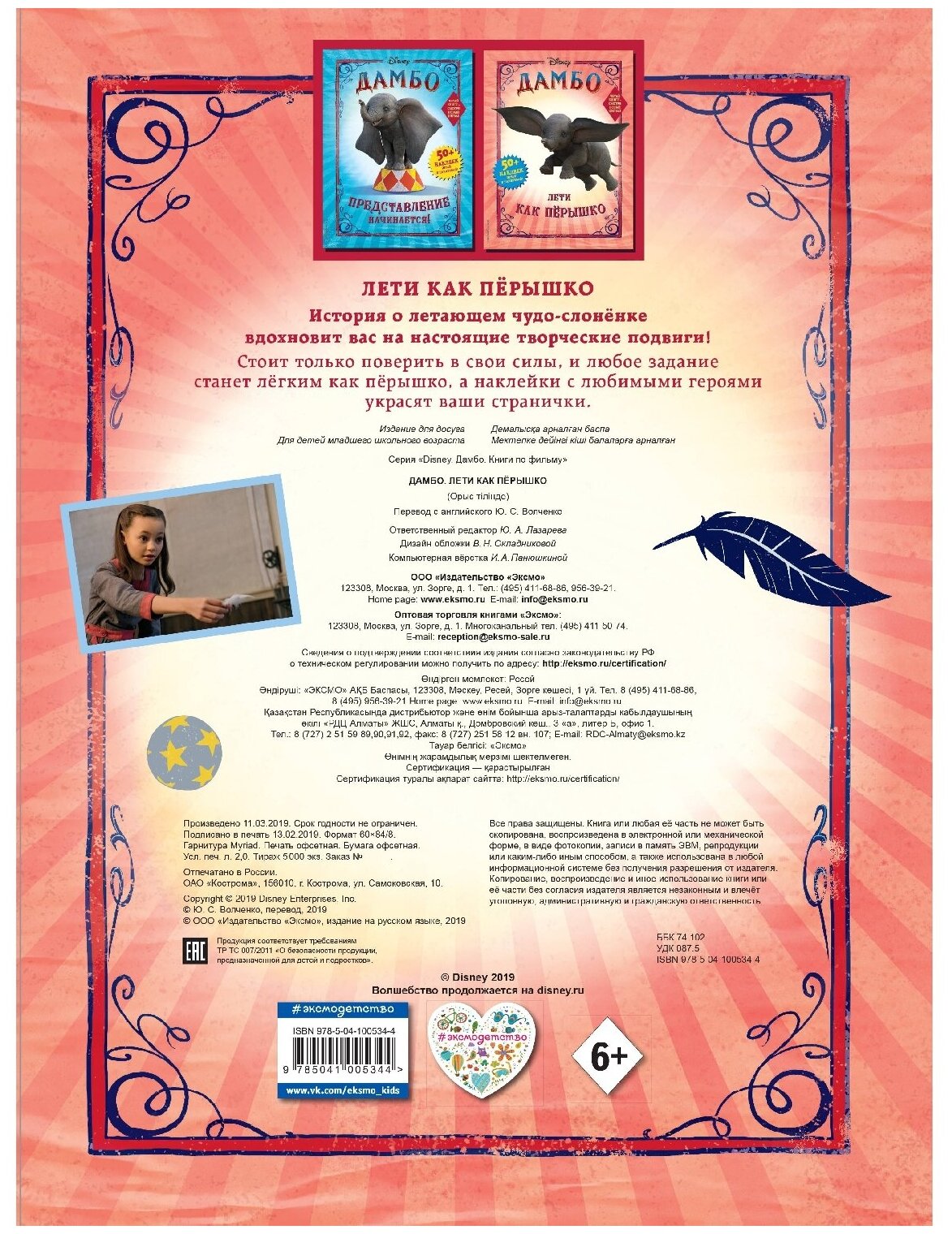 Сервис сравнения цен СкидкаГИД предлагает сравнить цены на товар «Книга: Дамбо. Лети как пёрышко (с наклейками) (Волченко Юлия Сергеевна (переводчик)); ООО "Издательство "Эксмо", 2019»