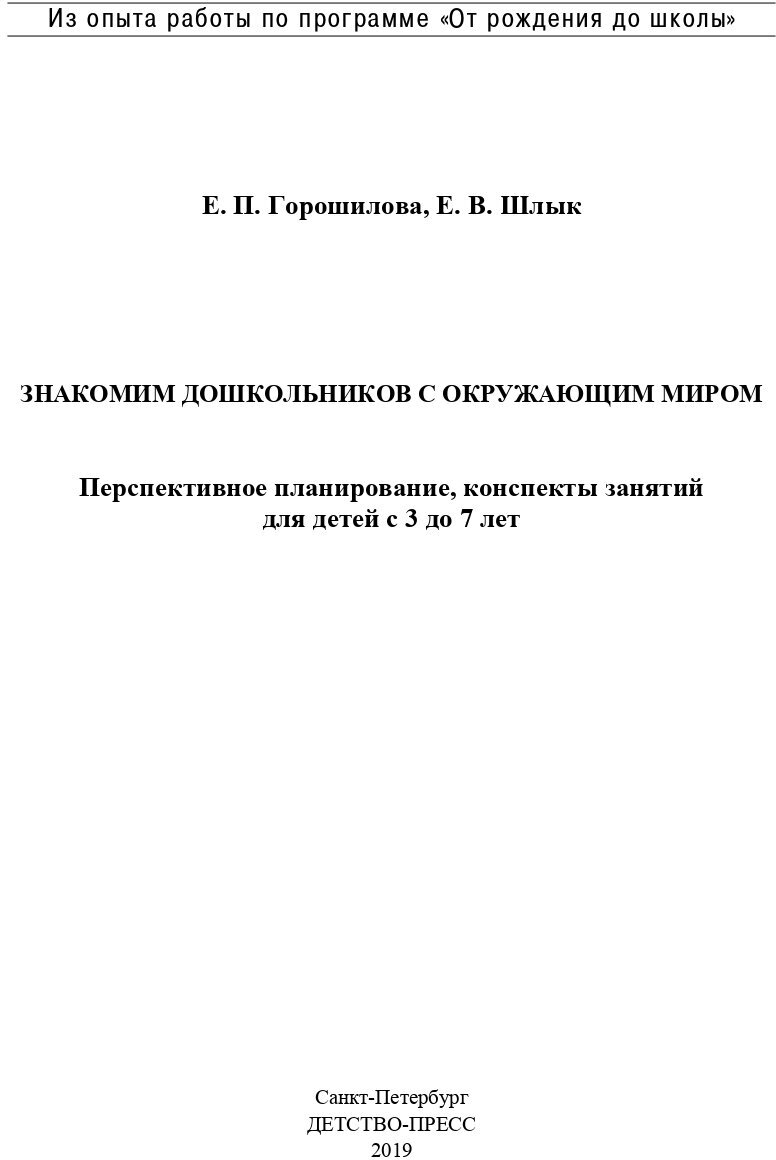 Знакомим дошкольников с окружающим миром. Перспективное планирование конспекты занятий для детей (Горошилова Елена Панцофиевна; Шлык Елена Викторовна); Детство-Пресс, 2021