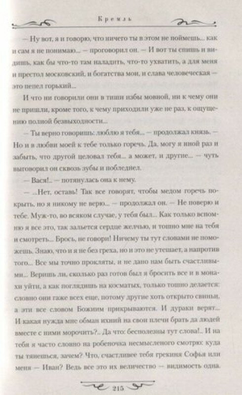 и вскоре какой-нибудь боярин счастлив будет, если его сыночка московский князь возьмет себе рындой правой руки. Ох, и дуреха же его Стеша, любовь невозможная. Сменила теремные стены на монастырские, а успокоения, как надеялась, не нашла. Слишком поздно она поняла, что не грех это - любить, а Василий - что это в нем мучения и тяга к запретному. Словно в