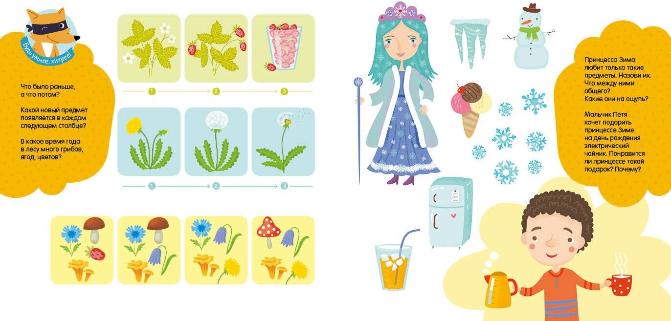 в целом, книга хорошая, своих денег стоит. все времена года отдельно описаны в форме стихов. много красочных картинок и различных заданий для детей про времена года.