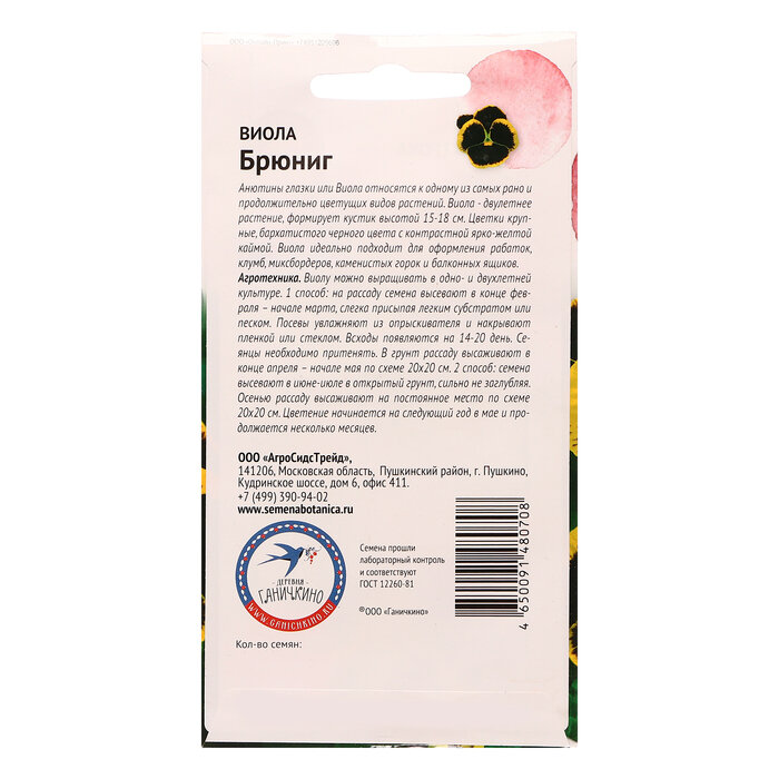Сервис сравнения цен СкидкаГИД предлагает сравнить цены на товар «Семена цветов Октябрина Ганичкина Виола Брюниг Семена от Октябрины Ганичкиной 10 шт»
