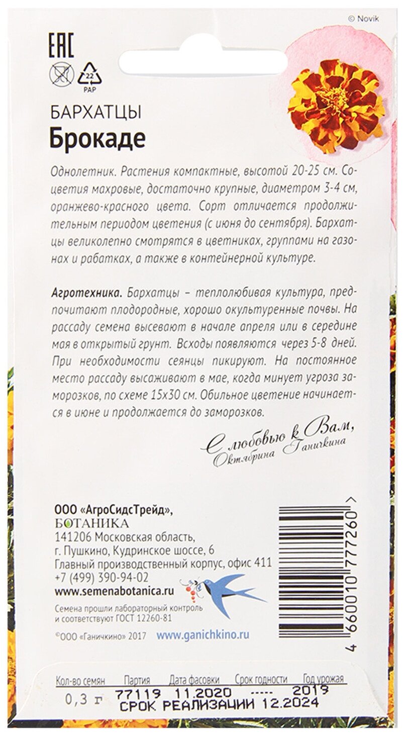 Модель: Бархатцы Брокаде Семена от Октябрины Ганичкиной 0,3 гр