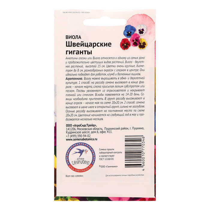 Модель: Виола Швейцарские гиганты Семена от Октябрины Ганичкиной 0,1 гр