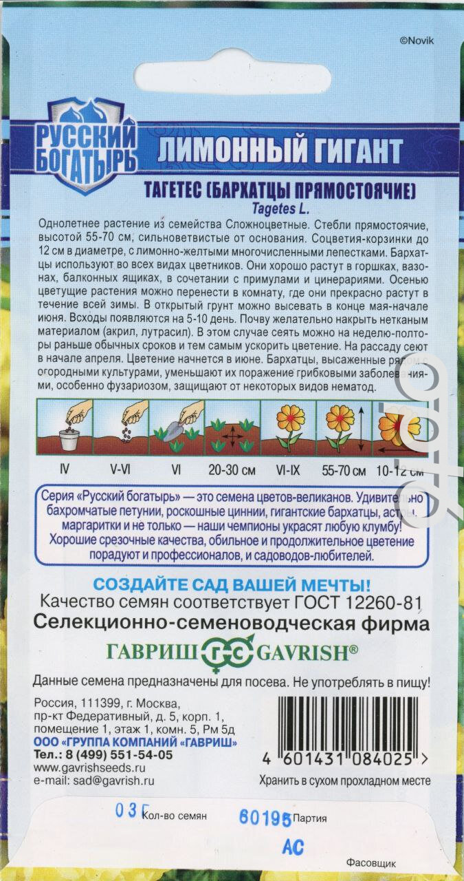 Сервис сравнения цен СкидкаГИД предлагает сравнить цены на товар «Семена цветов ГАВРИШ Бархатцы прямостоячие Лимонный гигант»