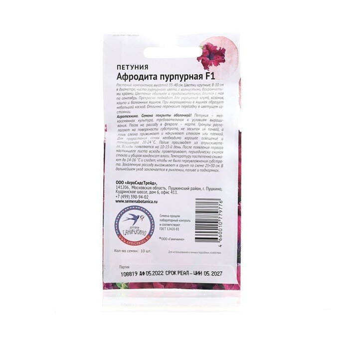 На сегодняшний день товар «Семена цветов ООО "Агросидстрейд" Петуния Афродита пурпурная Семена от Октябрины Ганичкиной F1 10 шт» можно купить с кешбеком в 1 магазине: Яндекс.Маркет