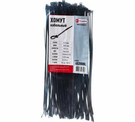 Модель: Хомут кабельный цвет черный 2,5х200 мм