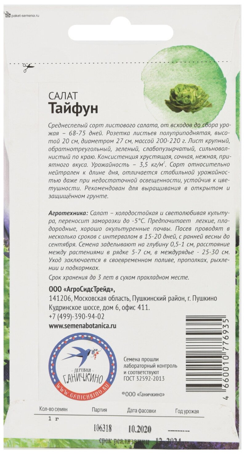 Модель: Салат Тайфун Семена от Октябрины Ганичкиной 1 гр