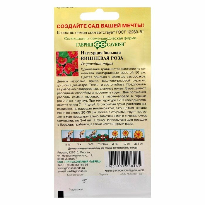 Сервис сравнения цен СкидкаГИД предлагает сравнить цены на товар «Семена цветов ГАВРИШ Настурция Вишневая роза»