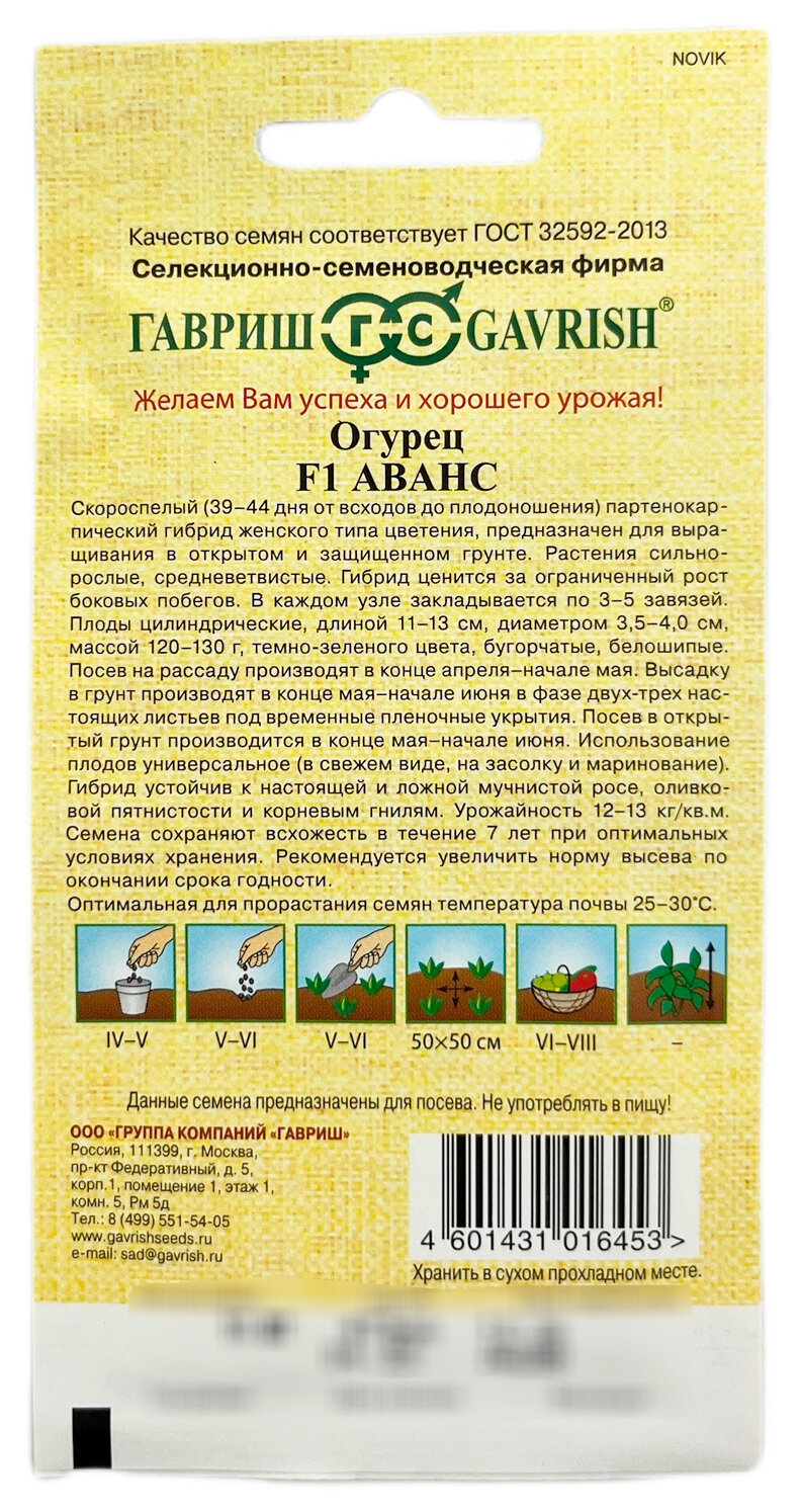 Семена овощей и ягод ГАВРИШ Огурец Аванс F1
