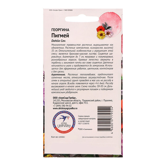 Модель: Георгина Пигмей смесь Семена от Октябрины Ганичкиной 0,1 гр