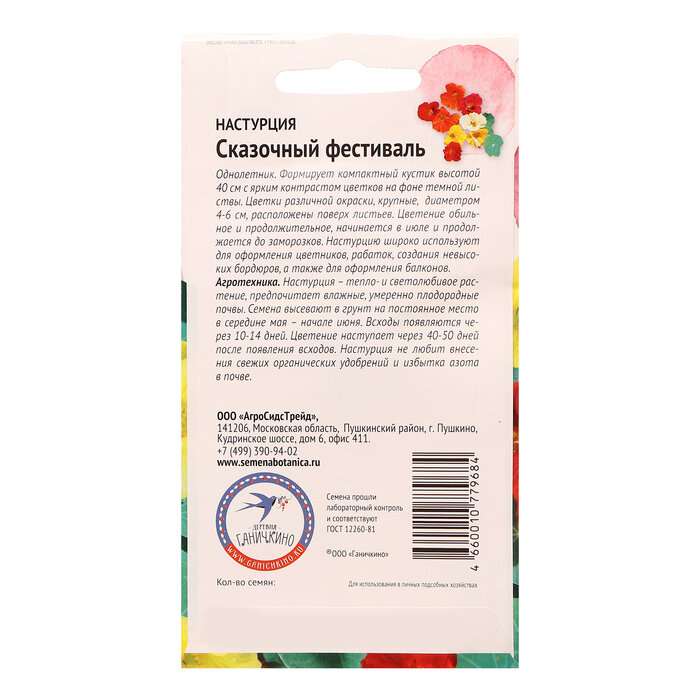 Сервис сравнения цен СкидкаГИД предлагает сравнить цены на товар «Семена цветов ООО "Агросидстрейд" Настурция Сказочный фестиваль Семена от Октябрины Ганичкиной 1 гр»
