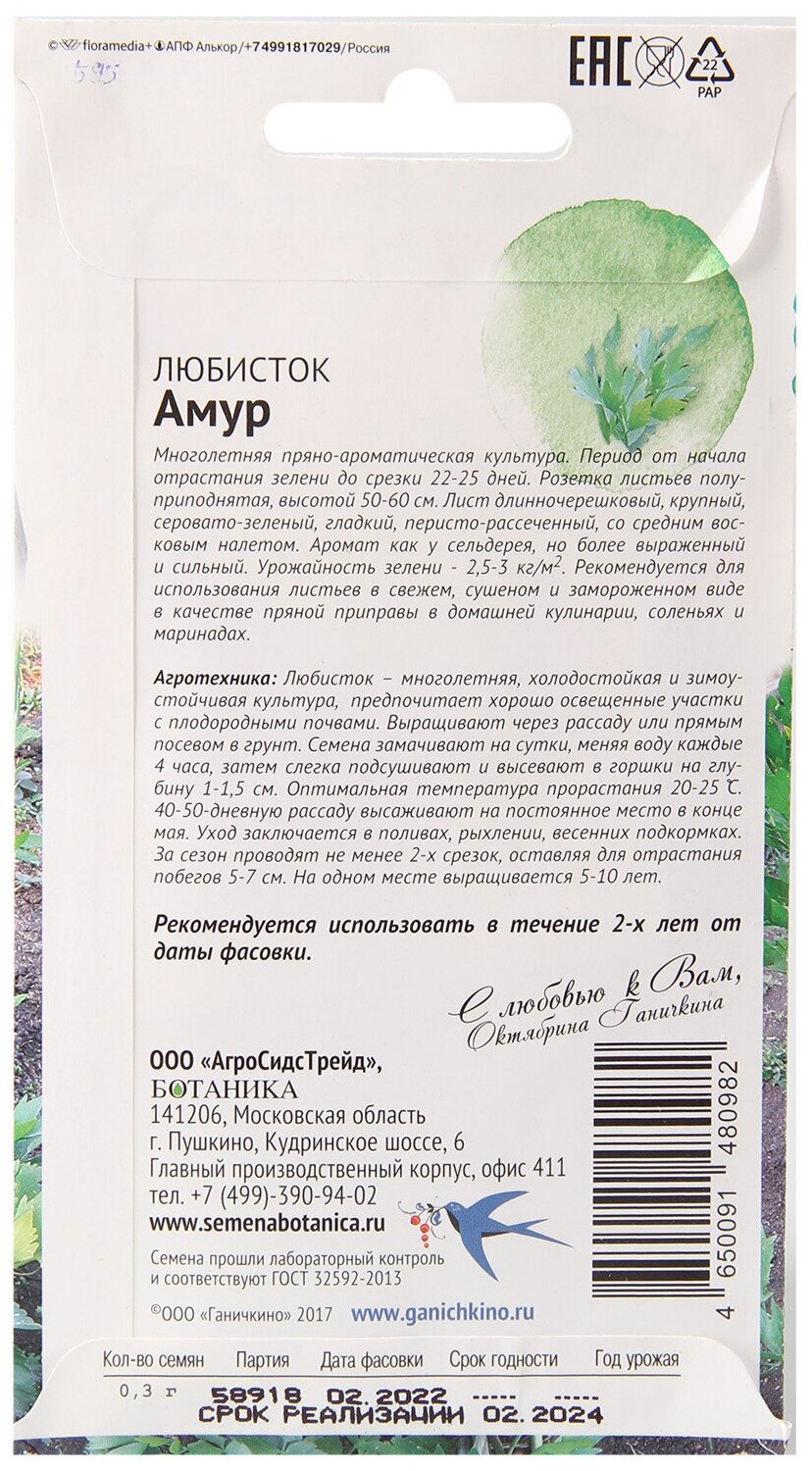 На сегодняшний день товар «Семена пряных трав и салатов ООО "Агросидстрейд" Любисток Амур Семена от Октябрины Ганичкиной 0,3 гр» можно купить с кешбеком в 1 магазине: Яндекс.Маркет