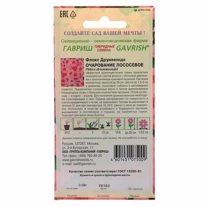 Семена цветов Утконос Флокс Друммонда очарование лососевое