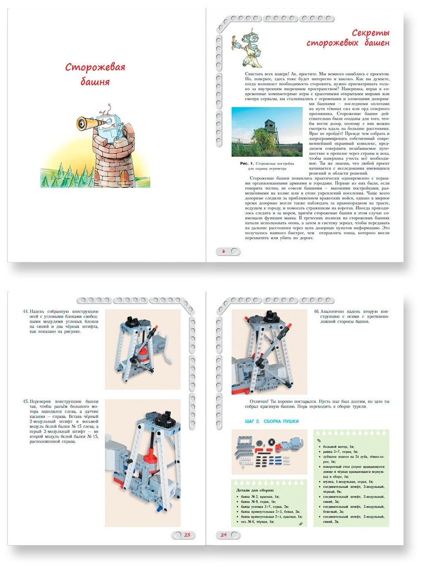 Книга содержит в себе несколько проектов для постройки с достаточно подробным описанием. Лично я приобрел книгу для кружка "ЛЕГО" с целью разнообразить виды построек по инструкциям, чтобы ребята не только могли работать с программой от ЛЕГО, но и взаимодействовали с книгами, что в век ИТ несомненно важно.
