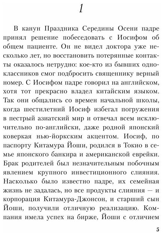В книге замечательно кинематографичный финал. Безумная игра Дуняши на фортепиано, объединяющая все сюжетные линии и всех персонажей, так и просится на экран (не стану более спойлерить). Поразила эрудиция автора: жизнь современного Шанхая с его небоскрёбами, лапшичными и пельменями по два юаня за штуку соседствует с библейскими историями и размышлениями о христианстве, с историями о жизни и смерти, с мыслями о любви — или её отсутствии. А буддийские храмы соседствуют с церковью, где разочарованный падре исповедует своего друга-психотерапевта Йоши (он же Иосиф), называющего проповеди «лекциями». На то она и шанхайская концессия!