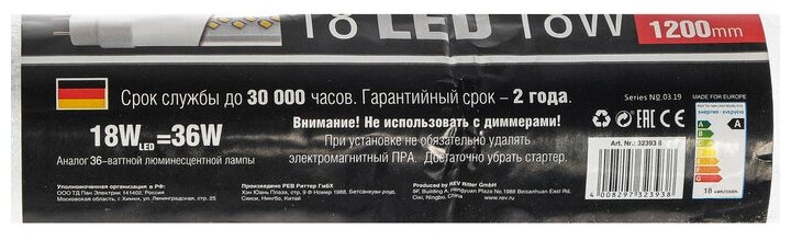 Светодиодная лампа REV G13 18 Вт 1440 лм 6500 К с колбой-трубкой - современная и безопасная замена устаревшим люминесцентным аналогам.