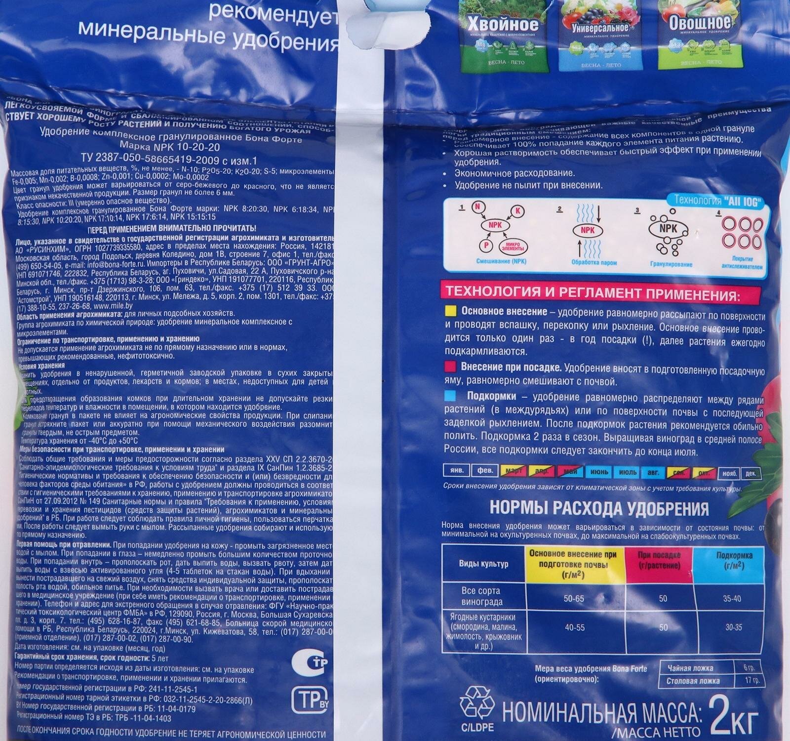 | Способ применения | Основное внесение при подготовке почвы 50-65 г/м?. При посадке рассады 50 г/растение. Подкормка в период вегетации 35-40 г/м? |