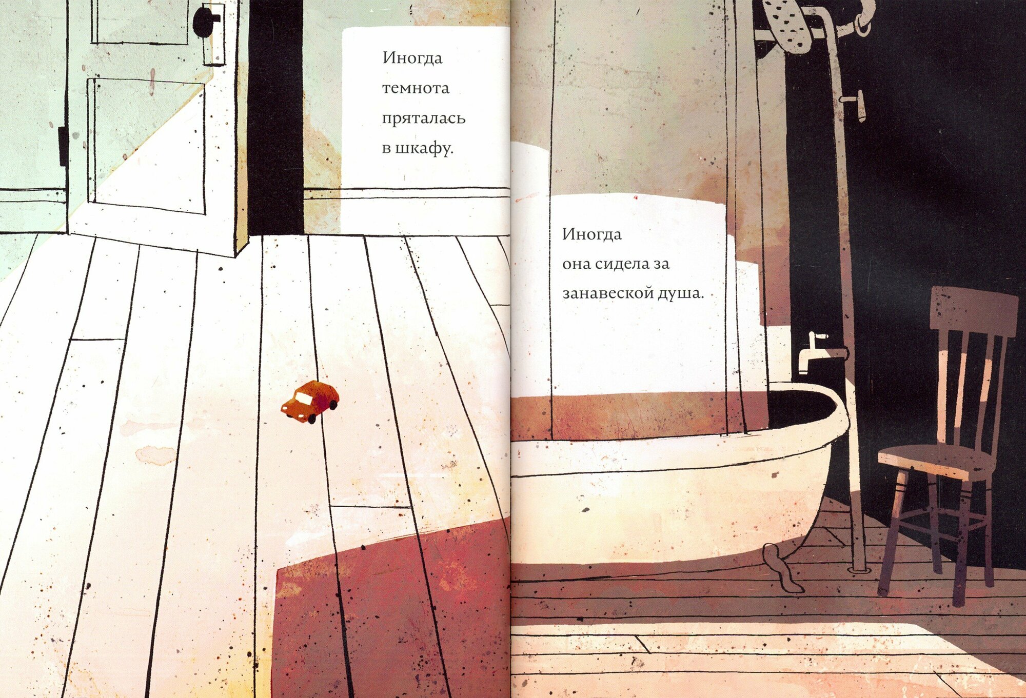 "Ты можешь бояться темноты, но Темнота тебя не боится. Вот почему она всегда поблизости." Ясное дело, как и многие дети, и некоторые взрослые, мой сын боится темноты. Фантазия у него бурная, не видит, но представляет себе всякое. Естественно, эта книга не пилюля, которую проглотил, и уже ничего не боишься. Но при правильном и очень тонком подходе, она работает.