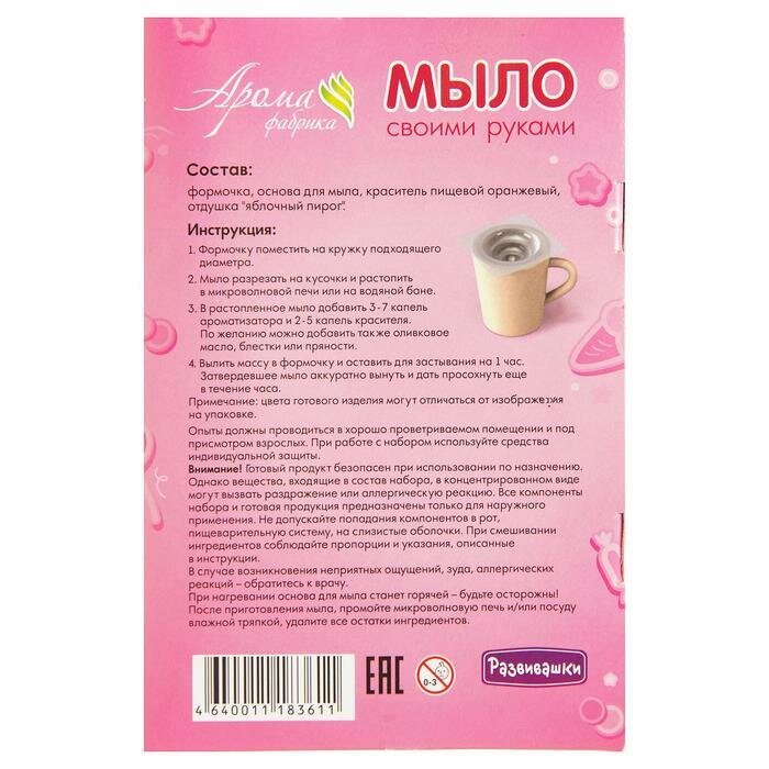 На сегодняшний день товар «Набор для творчества Аромафабрика Мыло своими руками Яблочный пирог (С0209)» можно купить с кешбеком в 1 магазине: Яндекс.Маркет
