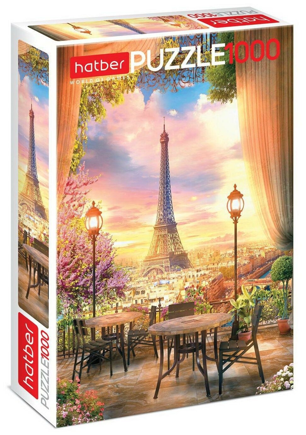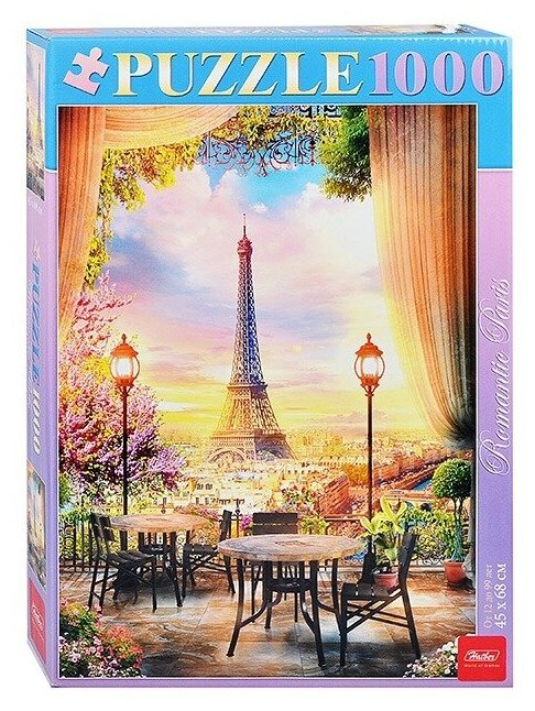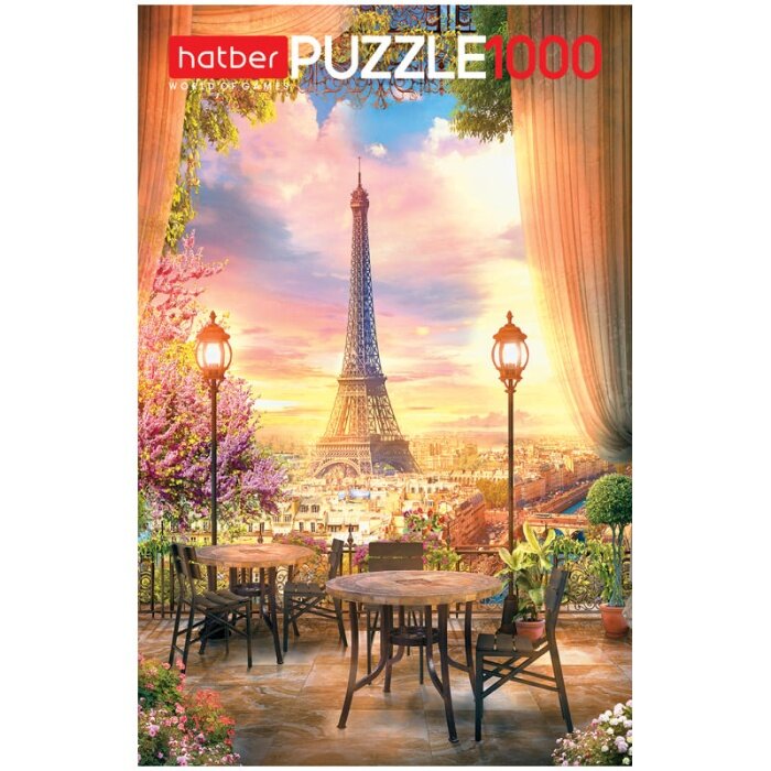 Пазл Романтичный Париж от российского производителя Hatber скрасит вечера и поможет окунуться в чарующую атмосферу столицы Франции не выходя из дома. На рисунке, который нужно будет собрать, изображен вид на легендарную Эйфелеву башню с небольшой открытой террасы в предзакатные часы. Вся картина выполнена в нежных светлых тонах, приятных глазу. Пазл состоит из 1000 деталей, что сделает процесс его сборки кропотливым и интересным.