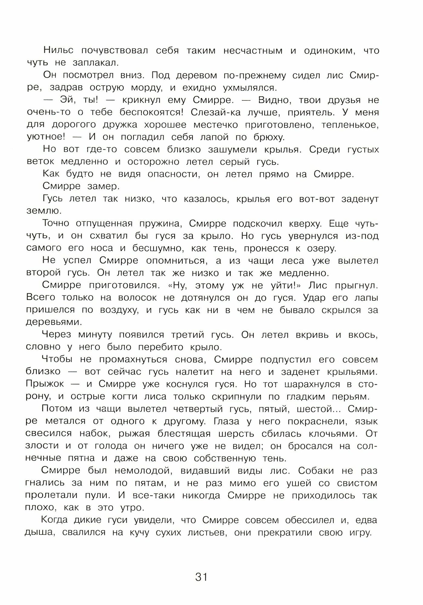 Выбор был тяжёлый. Парадокс : представлено много вариантов этой книги, а все равно чего-то не хватает. Во-первых, искала перевод, как в моем любимом издании 1959 года, во-вторых, иллюстрации... Из представленых не нашла "своего" Нильса. Хотелось избежать мультяшности, в результате выбрала эту книгу. Довольна на 80%: перевод соответствует, качество издания превосходное - увеличенный формат, плотная белая бумага, иллюстраций много и они очень динамичные - что мне понравилось, а вот не понравилось то, что преобладающий цвет иллюстраций красно-коричневый. Вобщем, я довольна приобретением этой книги. Может со временем найду своего Нильса)