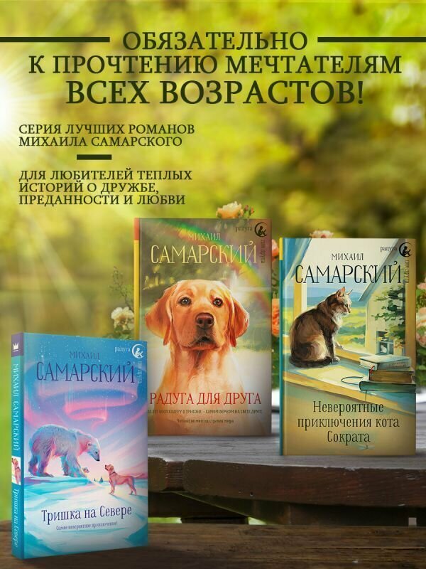 Читаем с удовольствием все книги Михаила Самарского. Мне и моему сыну (13 лет) книга очень понравилась. Она предназначена для чтения и обсуждения с детьми. Вы никогда не задумывались, как живется слепому человеку? Какие проблемы у него возникают в повседневной жизни? Книга учит внимательнее относится к слепым людям. Рассказывает об отношениях собаки-поводыря и "подопечного" человека. Главного героя - лабрадора Трисона ждет не мало занимательных приключений. А описание жизни людей и животных на Севере интересно не только детям, но и взрослым. Из нее вы узнаете, что у собак, как и у людей, есть свои обязанности (ездовые собаки, собаки-няньки, розыскные собаки ...). Научитесь внимательное относиться к животным.
