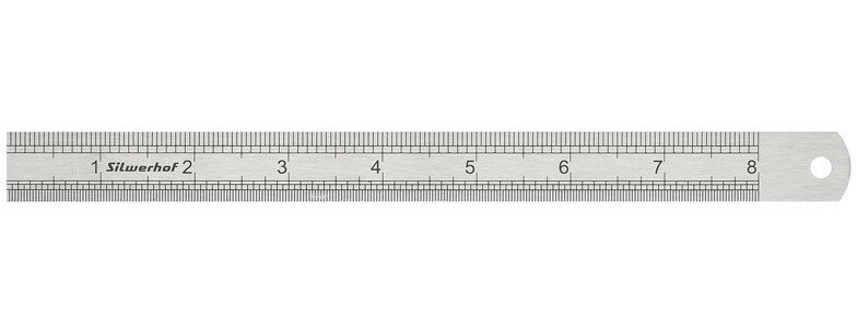 Линейка Silwerhof изготовлена из высококачественной стали. Предназначена для чертёжных и измерительных работ. Линейка обладает четкой разметкой, что делает ее удобной в использовании. Имеет двойную градацию шкалы (сантиметр, дюйм). Есть отверстие для подвешивания на стену. Длина шкалы составляет 20 см. Упаковка - ПВХ чехол с подвесом. Изготовлено в Китае.