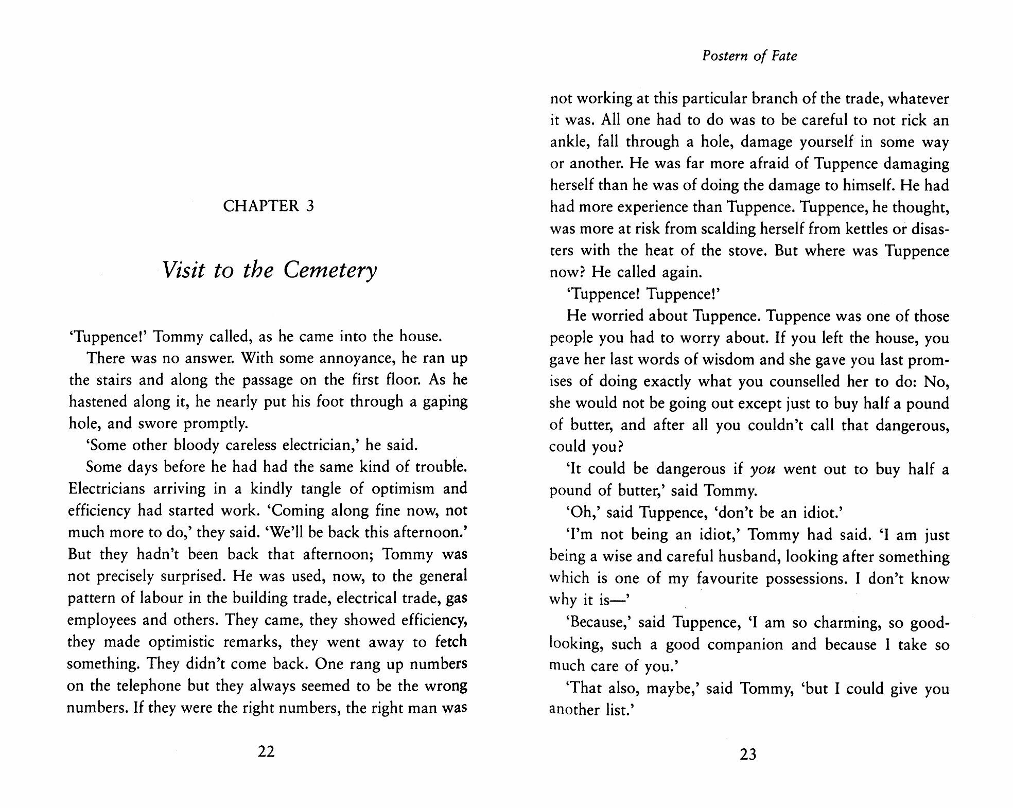 A poisoning many years ago may not have been accidental after all. Tommy and Tuppence Beresford have just become the proud owners of an old house in an English village. Along with the property, they have inherited some worthless bric-a-brac, including a collection of antique books. While rustling through a copy of The Black Arrow, Tuppence comes upon a series of apparently random underlinings. However, when she writes down the letters, they spell out a very disturbing message: "M a r y - J o r d a n - d i d - n o t - d i e - n a t u r a l l y". And sixty years after their first murder, Mary Jordan's enemies are still ready to kill.