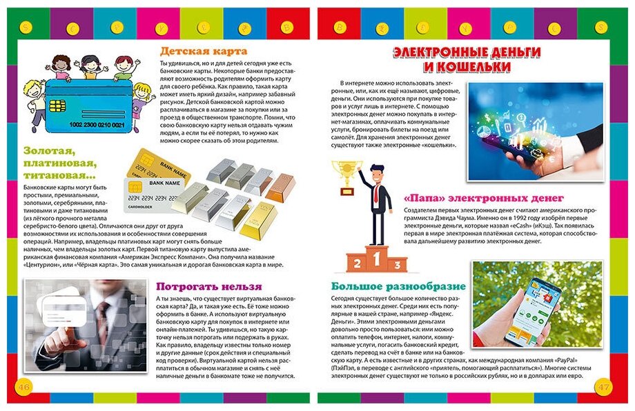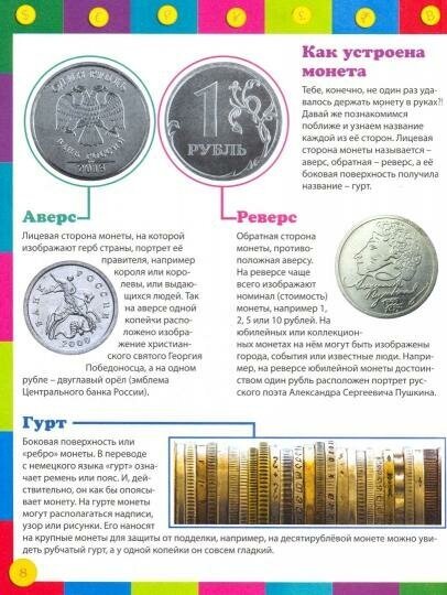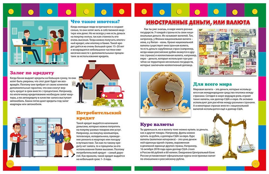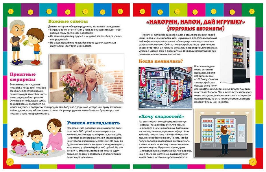 Сегодня каждый день мы используем деньги, чтобы расплатиться за продукты на рынке или купить вещи в магазине, мы платим парикмахеру за стрижку или оплачиваем билеты в кинотеатр. И в этом процессе с определённого возраста уже участвует ваш ребёнок. Что же такое деньги, когда они появились, для чего нужны, чем их можно заменить в современном мире? На что потратить карманные деньги, что можно купить в интернет-магазине? Ответы на эти и многие другие вопросы вы со своим любознательным ребёнком найдёте в нашей книге, а интересные факты и яркие иллюстрации сделают ваше чтение ещё более увлекательным!