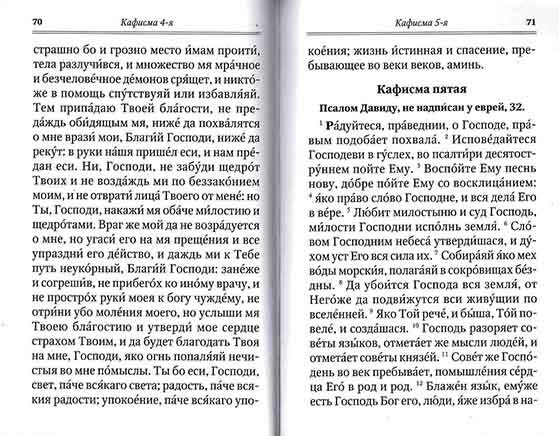 На первой славе даётся молитва о здравии из утренних молитв и присовокупляется молитва о единоумершем, которая дублируется на всех славах. А на второй славе - молитва о упокоении также из утренних молитв. На третей же славе обычные умилительные тропари и молитва. В конце псалтири есть заупокойная лития и помощь тем, кто собирается начать чтение по усопшим.