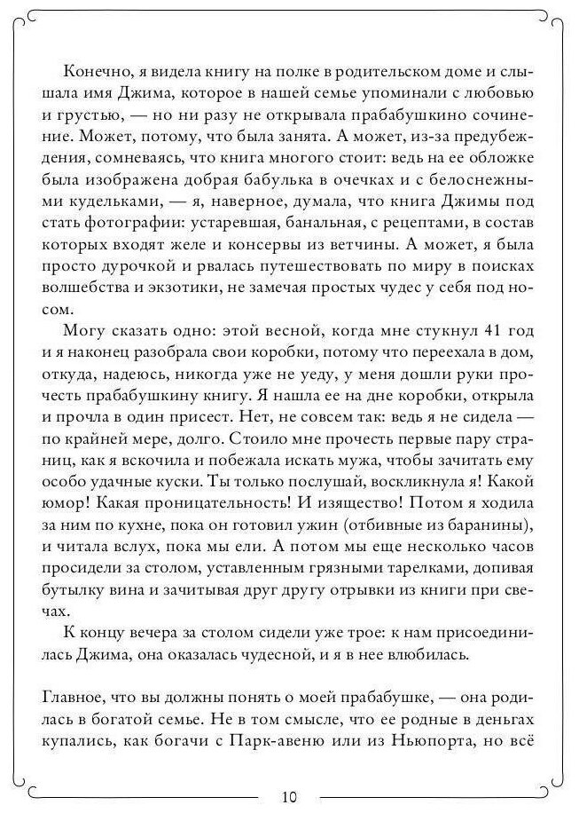 Книга Элизабет Гилберт и ее прабабушки Маргарет - не столько сборник рецептов, сколько путешествие во времени, переносящее читателя в Америку середины прошлого века, когда хозяйки пекли домашний хлеб, умели приготовить соус из каперсов по меньшей мере тремя способами и ждали к обеду десяток гостей. А обед всегда был прекрасным поводом устроить маленький праздник, чтобы поделиться с друзьями душевным теплом и радостью бытия.