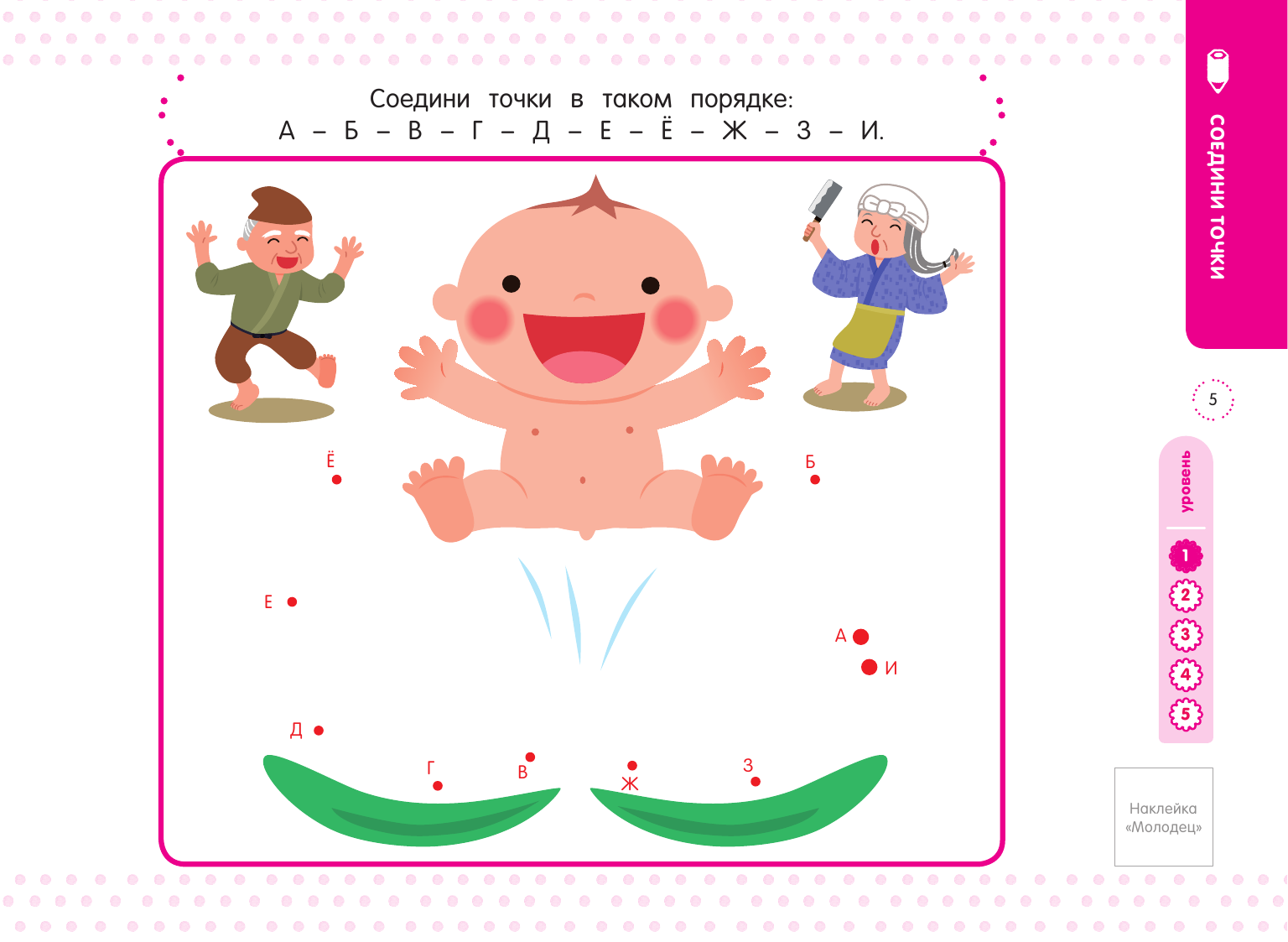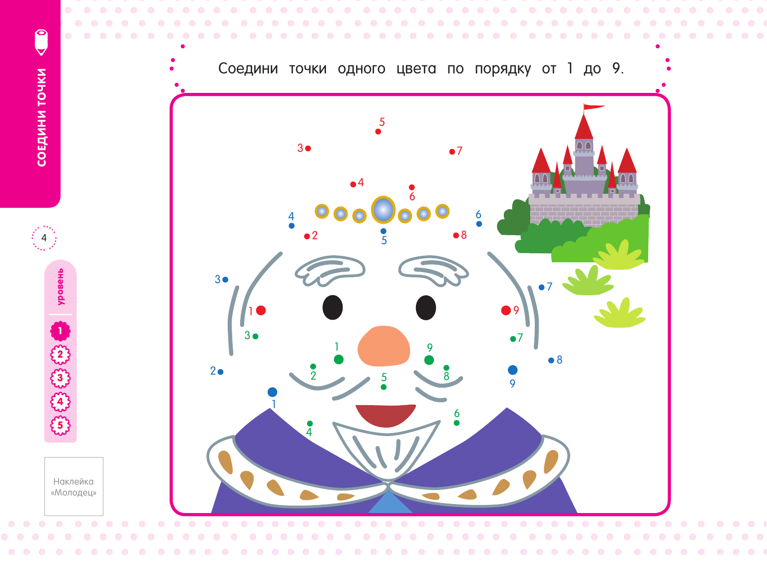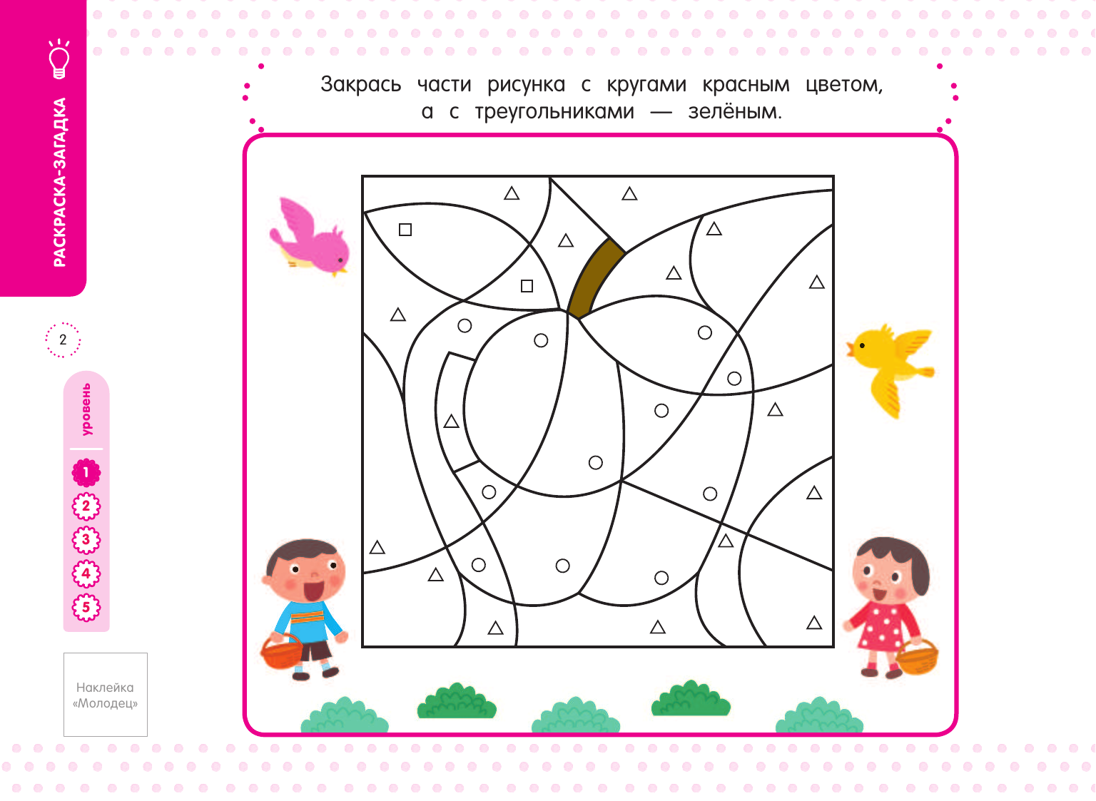 В книгу включены три вида заданий: лабиринты, соединение точек, раскраски-загадки. Все они помогают развивать мышление ребёнка, прививают ему любовь к заданиям, при выполнении которых нужно думать. Если правильно соединять точки и раскрашивать заданные части рисунка, постепенно проявляется изображение. Давайте вместе с ребёнком строить догадки, что же получится, и обсуждать получившуюся картинку. Это сделает выполнение упражнений ещё более увлекательным и будет способствовать развитию мышления ребенка.
