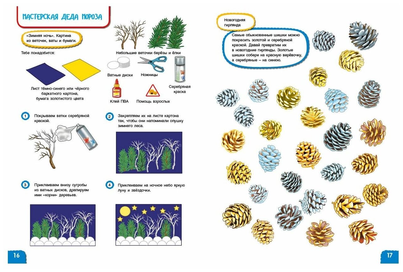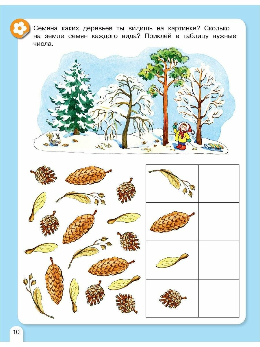 Вспоминая зиму, ребята раскрашивают яркие ёлочные украшения и зимние угощения, сортируют инвентарь для зимних видов спорта, проводят увлекательные эксперименты, рисуют, проходят лабиринты, подбирают наклейки.