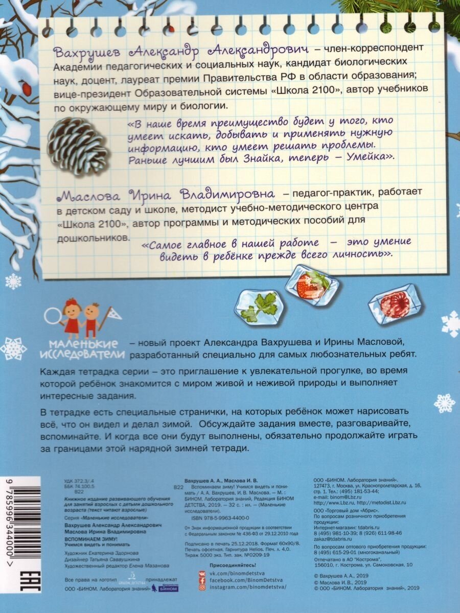 Вспоминаем зиму! Учимся видеть и понимать (Вахрушев Александр Александрович, Маслова Ирина Владимировна); БИНОМ ДЕТСТВА, 2023